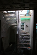 Und auch die Treppe ist bis Mittag schon drin. So kann es zur nächsten Etage übergehen.