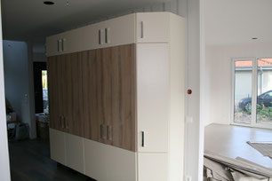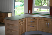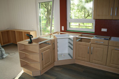 Die Küche ist auch offener Raumtrenner zum Essbereich, also musste eine eckige Rundung reingebracht werden. Alles ist in der Waage ausgerichtet und die Positionen sind durch eine Extraecke befestigt.