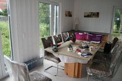 Beim Stuhlkauf waren wir ja letzte Woche recht erfolgreich. Noch sind sie wie vor einer Einweihung mit Folien abgedeckt und der Tisch wird sicher auch bald nicht mehr als Ablage