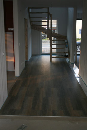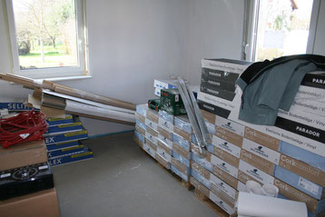 Bilder werden schon noch kommen, aber Neuigkeiten sind schneller. Schlafzimmer, Ankleidezimmer, Kinderzimmer, Diele oben - bis aufs Bad alles fertig bezüglich Boden. Gästezimmer hat Fußleisten und gestern sind die Möbel gekommen.