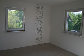 Tiefengrund, Tapetengrund, Tapeten an allen Decken (Rauhfaser), Tapeten an fast allen Wänden im Erdgeschoss, Anstrich an fast allen Decken.