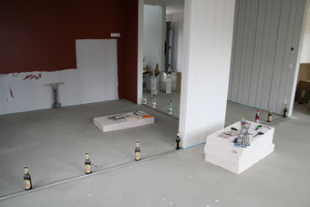 Was zunächst aussieht, wie die Reste einer Flaschenparty, ist der Beginn der Fussbodenarbeiten. Die Elektriker sind nun fast fertig, nur die Bewegungsmelder für die Flur- und Treppenhausbeleuchtung müssen noch mal getauscht werden. Und zu unserer Überraschung haben wir erfahren, dass der Wert des Zementstrichs eigentlich schon länger ausgereicht hätte, um mit der Belegung zu beginnen, aber gut, die Zeit war inzwischen ja nicht vergeudet.
