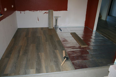 Montagsziel fast erreicht, Flur 1 und 2 fertig, Küche zur Hälfte, aber das in Rekordzeit, wird also sicher morgen fertig. Sofern die Beine von der Chefverlegering wieder wollen ;-)