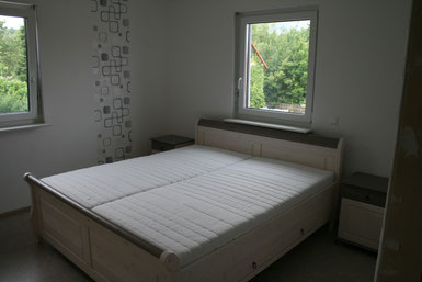 Inzwischen haben wir das Gästezimmer komplett fertig gemacht bis auf die Fussleisten, die wegen der noch einzubauenden Türen nicht gesetzt werden können.