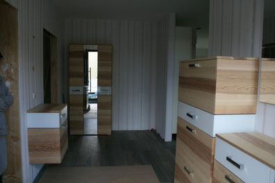 Auch der erste Dielenschrank ist ausgepackt und steht.