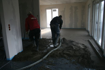 Im Gegensatz zum Fließestrich ist der Wasseranteil beim Zementestrich nicht so hoch und schon bald begehbar. Aber rund 4 Wochen dauert es auf jeden Fall, bis die Feuchtigkeit soweit aus dem Boden ist, dass ein Belag darauf verlegt werden kann.