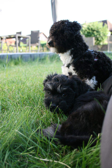 Leider haben die Menschn nicht so viel Zeit wie ich und da haben sie sich um eine Spielkameradin für mich gekümmert. Okay, ist noch eine halbe Portion, denn schließlich bin ich mit meinen gut 8 Monaten ja erheblich älter als die 8 Wochen alte Kleene.